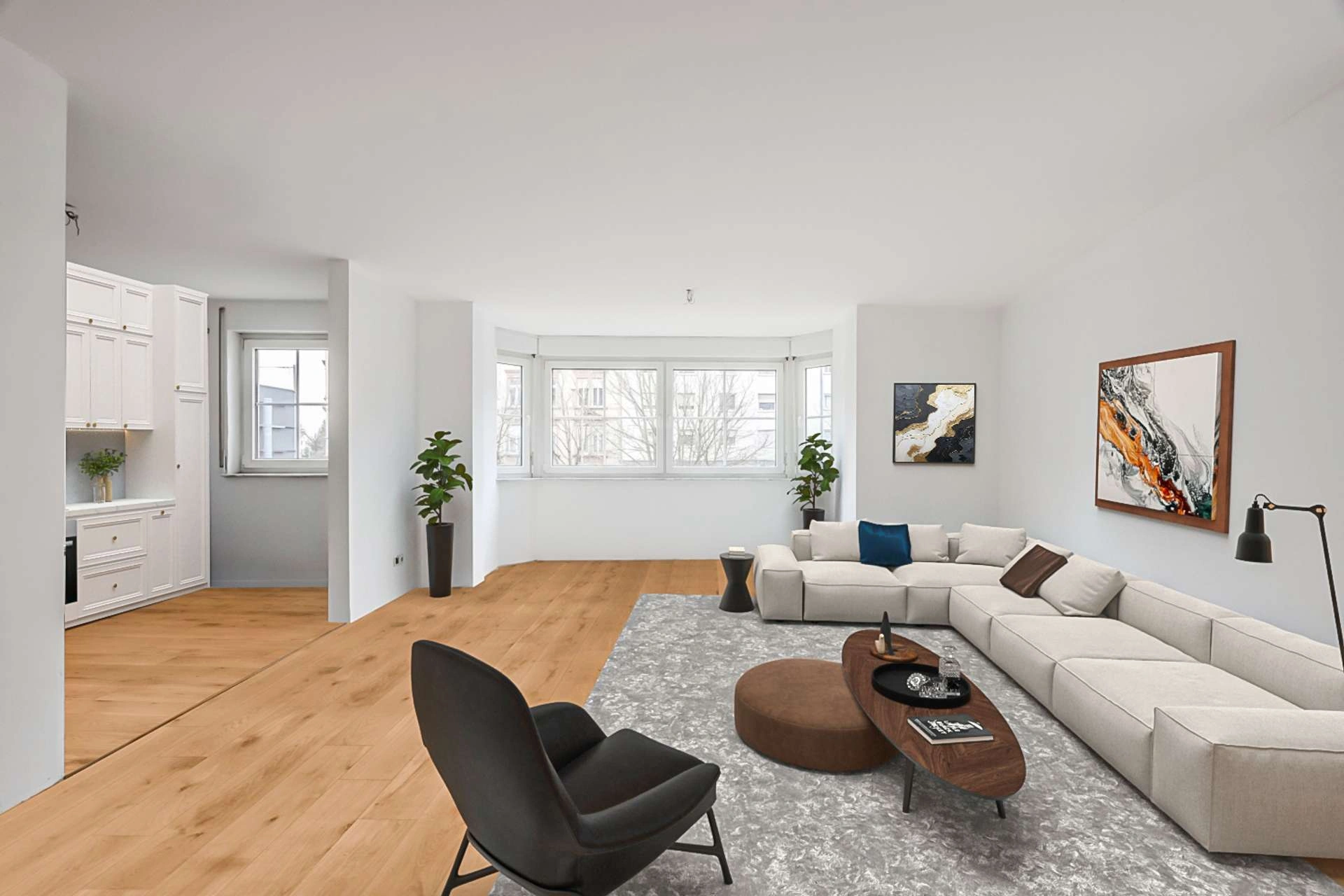 Mit einer Wohnfläche von ca. 92 m² bietet die Wohnung vier optimal geschnittene Zimmer, die eine flexible Nutzung ermöglichen. Die offene Wohnküche geht nahtlos in den großzügigen Wohn- und Essbereich über und schafft eine einladende Atmosphäre für gemeinsame Stunden mit Familie und Freunden. Große Fensterflächen sorgen für viel Tageslicht und unterstreichen das moderne Wohnkonzept. Ein besonderes Highlight ist der großzügige Balkon mit Südausrichtung, der einen idyllischen Rückzugsort mit Blick auf den Henninger Turm mitten in der Stadt bietet.