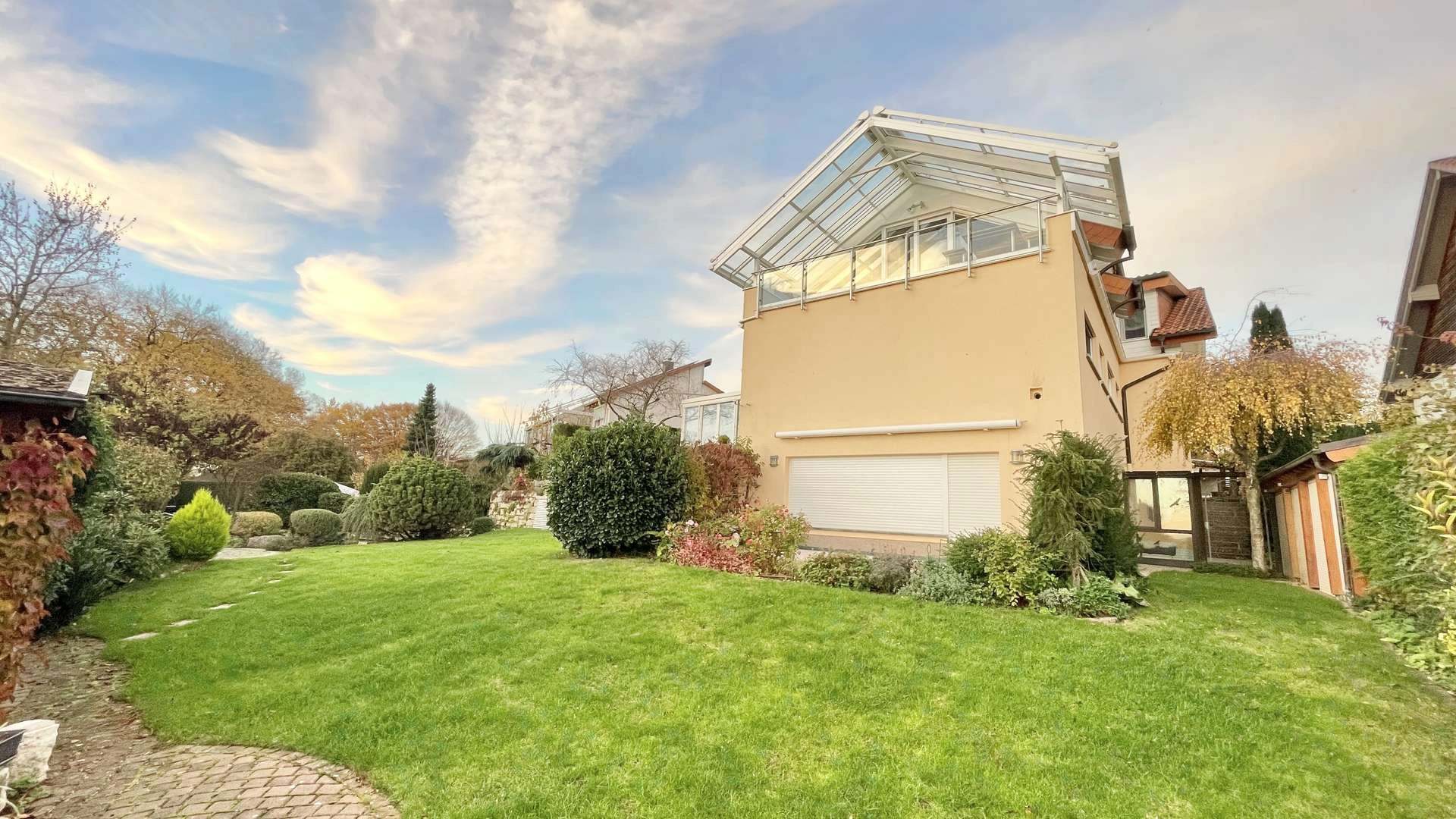 Die Wohnung befindet sich im Untergeschoss des Hauses, liegt jedoch aufgrund der Hanglage ebenerdig zur Gartenseite und verfügt über einen separaten, seitlichen Eingang. Zunächst gelangt man in einen Windfang aus Glas, bevor man in den zentralen Flur der Wohnung übergeht. Von dort aus sind alle Räume direkt zu erreichen.