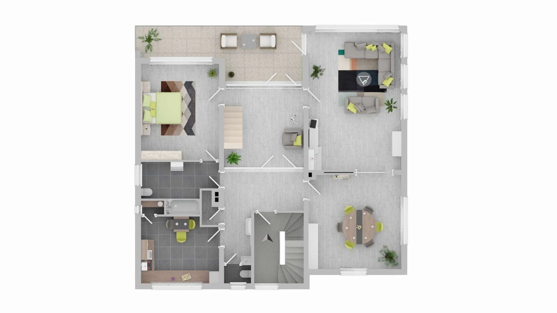 - Terrasse mit Zugang zum Garten